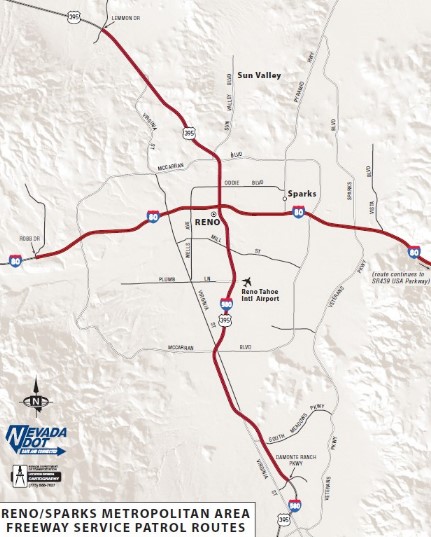 To view the Las Vegas Freeway Service Patrol route schedule, click here. To view the Reno Freeway Service Patrol route schedule, click here. Update Maps below